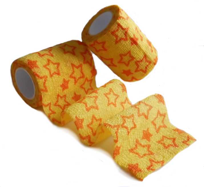 - Elastické obinadlo-bandáž šíře 7,5 cm, délka 4,5 metru - žloutková s oranžovými hvězdami