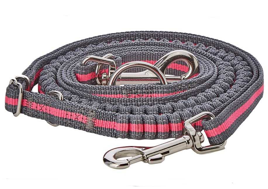 - Přepínací bungee vodítko (210-240 cm), popruh 2,5 cm, antracitová-růžová