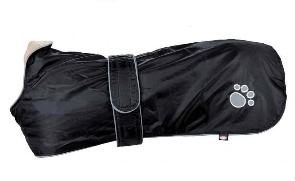 Tato vesta od výrobce Trixie je opatřena reflexními proužky po celém jejím okraji. Na bocích jsou reflexní tlapičky. Vypodložena je světle hnědým fleecem. Horní vrstva černé barvy skvěle chrání proti mrazivému větru. Možné naimpregnovat a tím se stane nepromokavou.