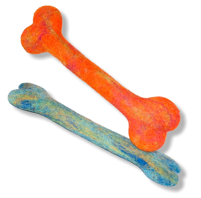Psi budou šílet pro Ringzee! Tyto skvělé a unikátní hračky ve tvaru kostí jsou vyrobeny ze 100% vlny z Nového Zélandu, která je propařená, obarvená (použitá jsou přírodní barviva) a tvarována v Nepálu. Proto je každý ručně vyrobený Ringzee skutečně unikátním uměleckým dílem! Tato hračka nemá žádný šev, který by váš pes mohl rozpárat, ani výplň, kterou by mohl vykuchat a rozházet po celém bytě či dvorku. Je to velmi lehká hračka, takže ani nebudete vědět, že ji máte přibalenou v zavazadle na procházku!