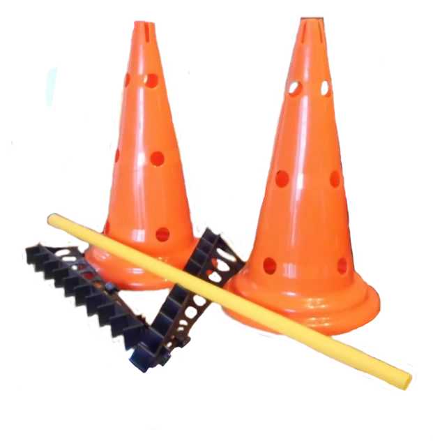 - 2 kusy držáků na tyčku které se připevňují na kužel, umožňují umístit tyčku ve výšce 10 - 50 cm. Toto rozpětí jde ještě zvýšit posunutím držáků do vyšší polohy.