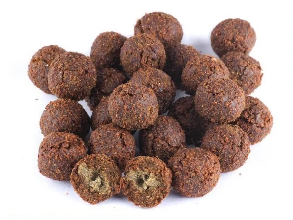 Skladování a spotřeba:Skladujte v dobře uzavřeném, neprodyšném PVC obalu, v suchu, šeru a chladu, bez rázového střídání teplot - může se kondenzovat voda na stěnách obalu a výrobek zplesnivět. Nevystavujte ho ani vysokým teplotám např. v autě nebo na přímém slunci. Při vysokých teplotách ( nad cca 28 °C ) výrobek měkne. Psovi toto ale nevadí a může kouli zkonzumovat.