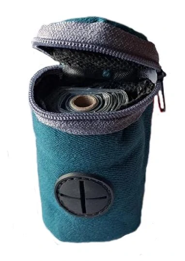 Kapsička z nylonu petrolejové barvy a dvě roličky náhradních sáčků