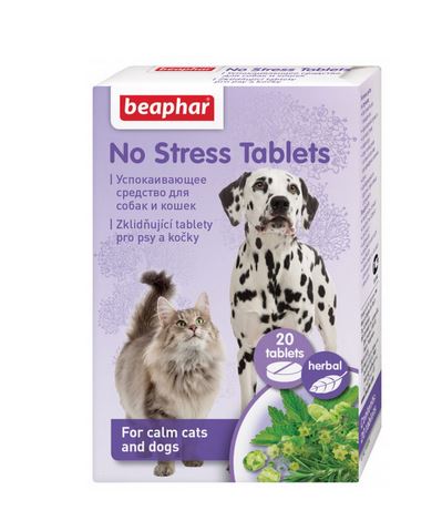 Zklidňující tablety No Stress jsou doplňkové krmivo pro psy a kočky. Jsou vhodné pro uklidnění a odstranění stresu při nadměrném štěkání, mňoukání a kňučení, proti strachu z odloučení, při návštěvách veterinárního lékaře, v období cestování či stěhování, při bouřkách a ohňostrojích.
