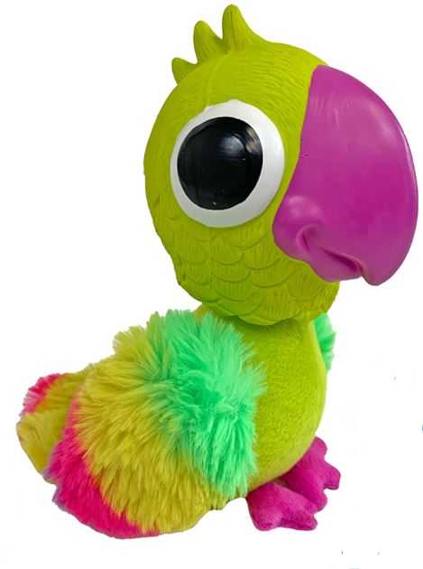 Hračka pro středně velké a větší psíky, která kombinuje přednosti plyšových a latexových hraček. Hlava o průměru 8 cm má výrazný zobák i kukadla. Tělíčko z jemného mikroplyše má na sobě křidýlka s duhovou kožešinou s delším vlasem.