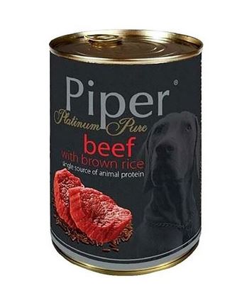 PIPER Platinum Pure - hovězí s hnědou rýží, 400gSklademKč 51,00/ ksKč 45,54 bez DPH