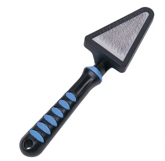 Profesionální dokončovací kartáč (slicker, finišák) ve tvaru trojúhelníku vhodný i pro velmi křehkou srst. Kartáčuje jemně, odstraňuje zacuchání a narovnává srst. Pružná podložna dovoluje drátkům přizpůsobit se srsti a předejít tak polámání srsti. S ohledem na jemné rozestupy drátků je ideální k použití při fénování. Svým tvarem umožňuje přístup i do špatně dostupných míst.