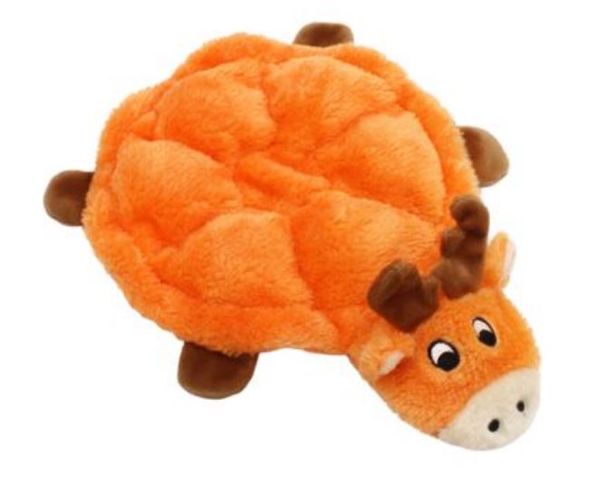 HračkaZippyPaws Squeakie Crawler je tvořena kroužkem z barevného plyše. Tato konkrétní hračka má zobrazovat losa Moodyho. Po celém obvodu kroužku není žádná tradiční výplň, zato je tam vytvořeno 6 "chlívečků", do nichž jsou umístěna pískátka, tedy celkem šest pískátek!
